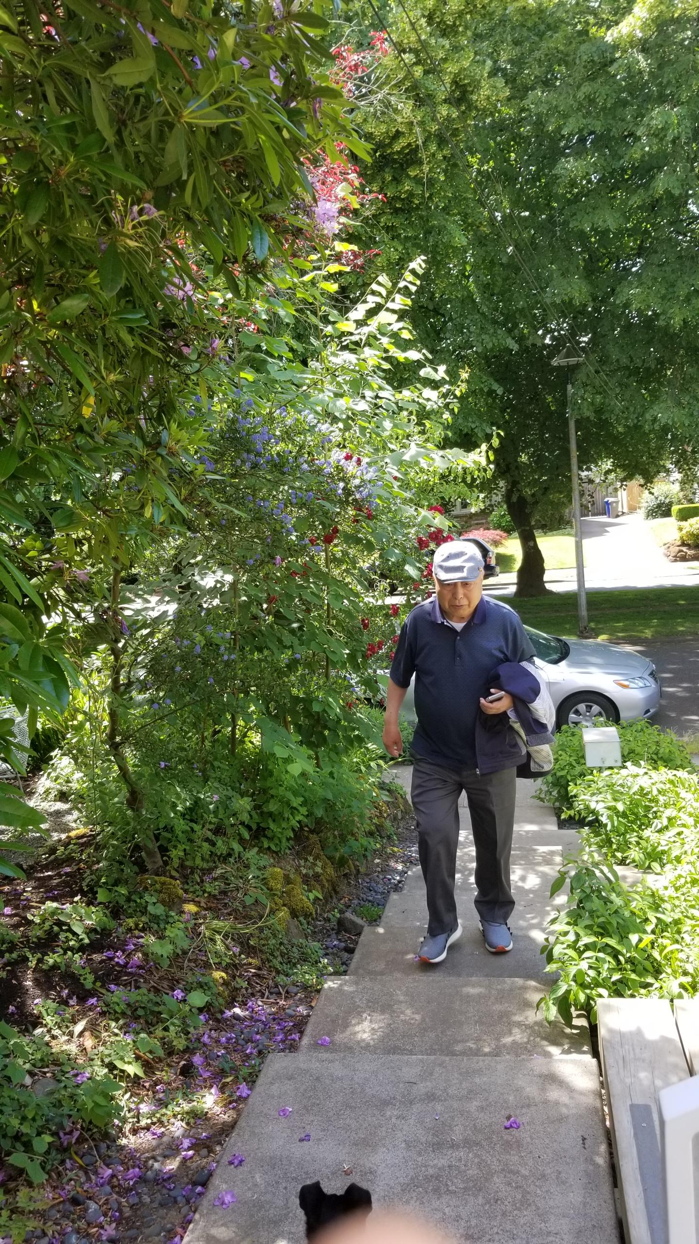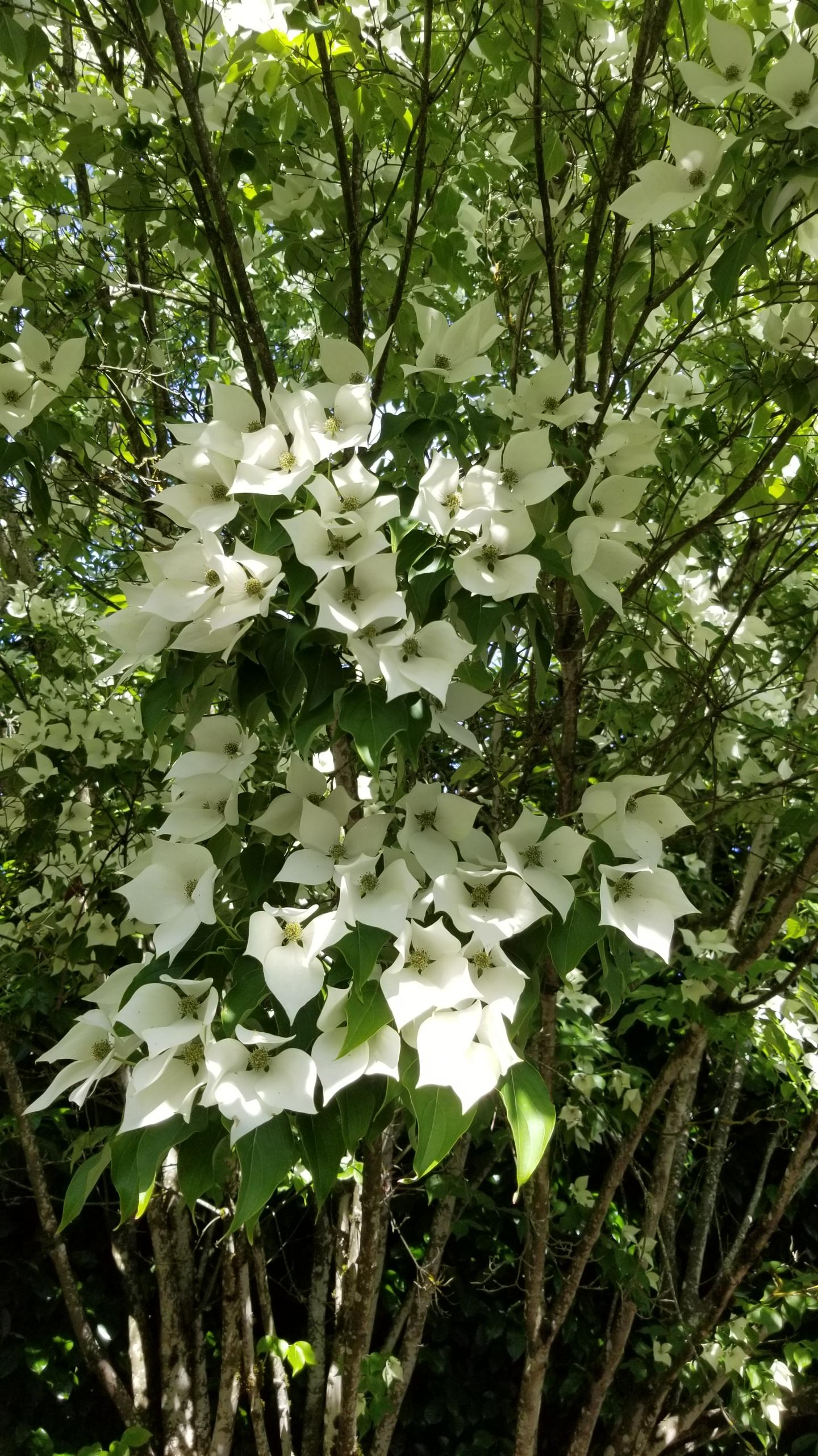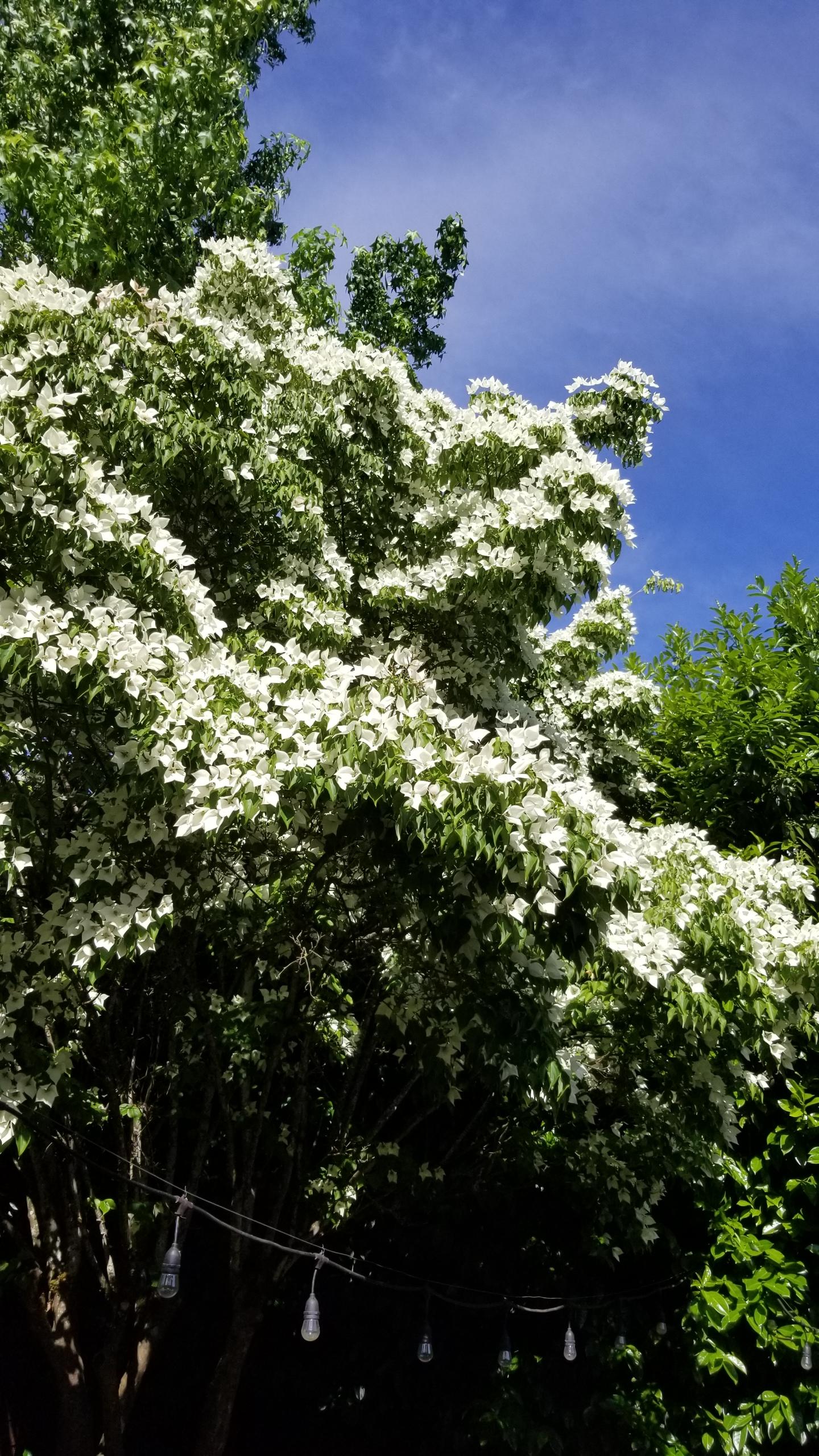뒤뜰에 작은 나무가 자라 시원한 그늘을 드리우고.. 꽃이름은 잘 모른고..