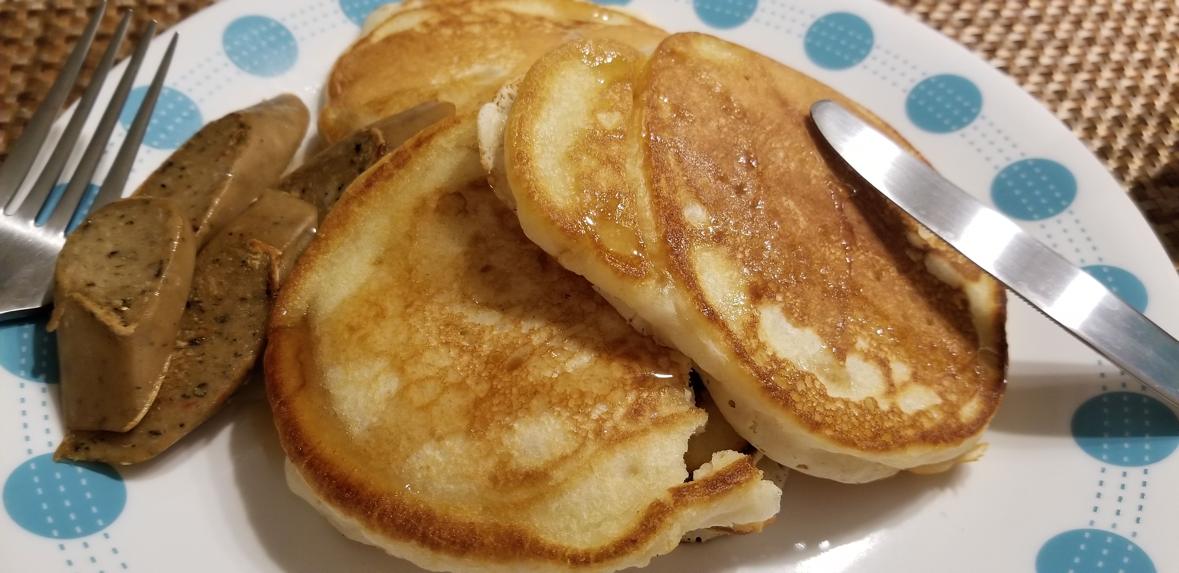 아침먹거리는 펜케익과 아침용 쏘세지로...