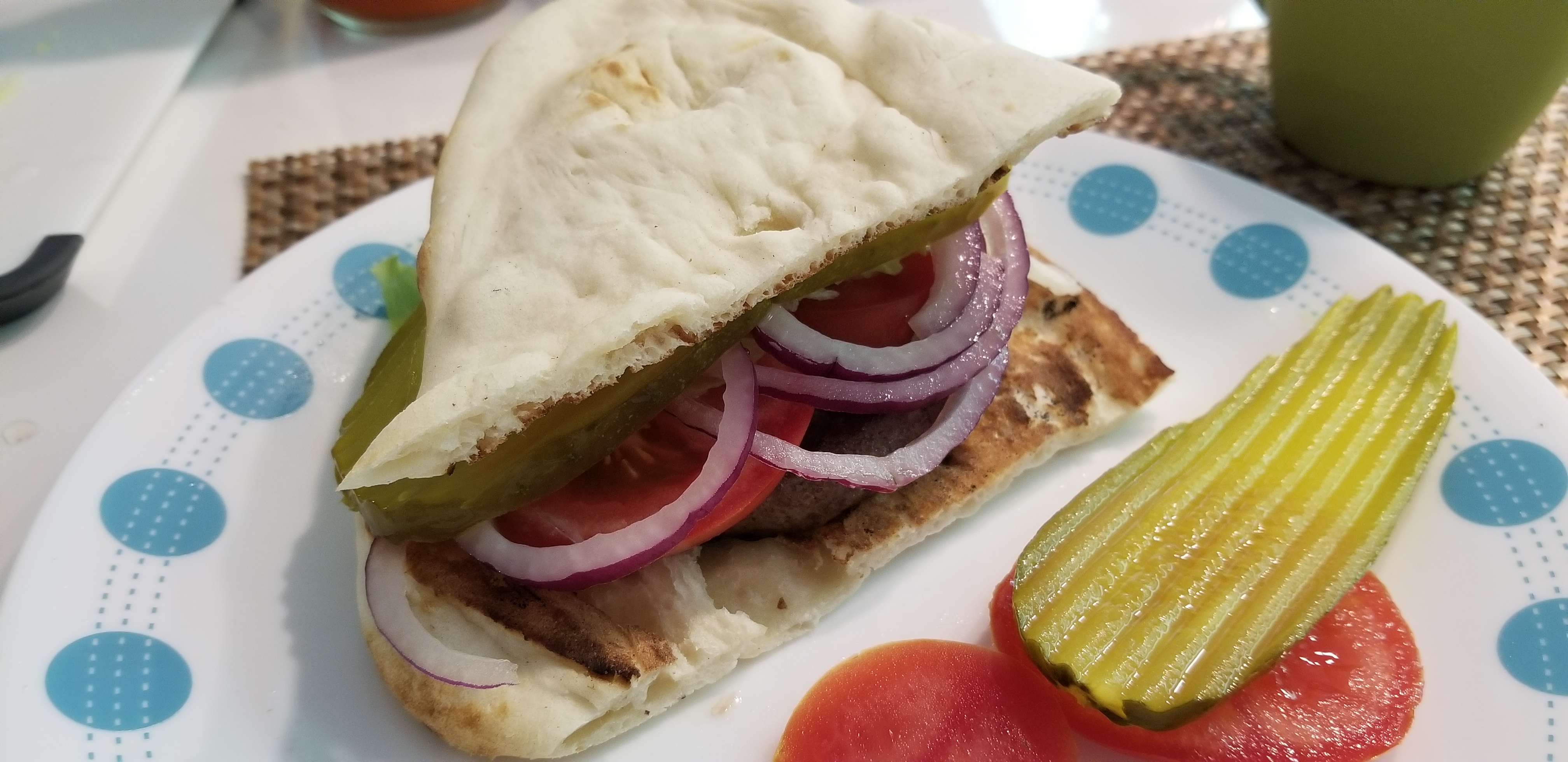 피클, 토마토,적 양파 와 함께..