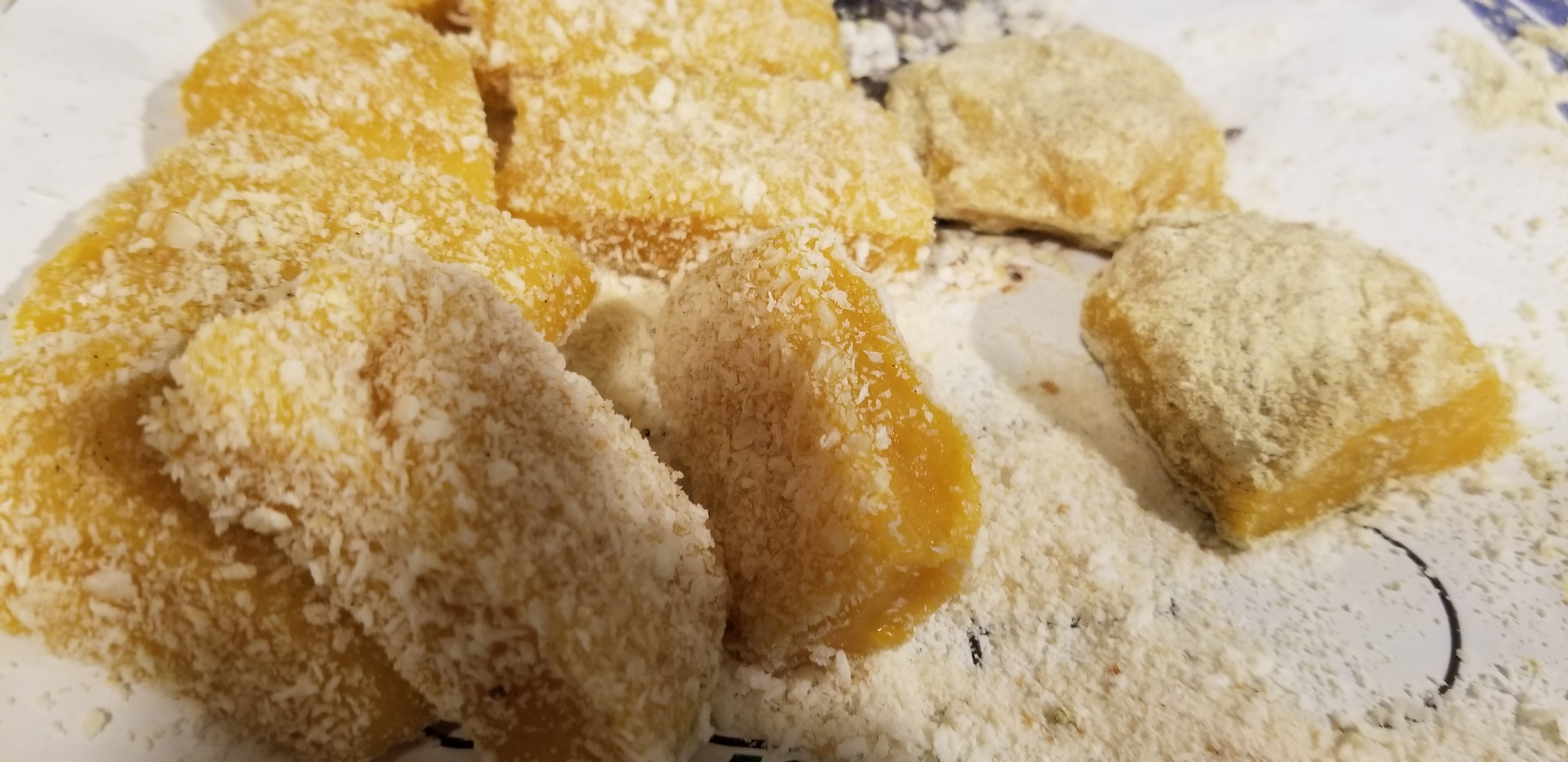 겉 고물은 콩가루..반은 카스테라 체에 걸러 내려서 했지요...ㅎㅎ