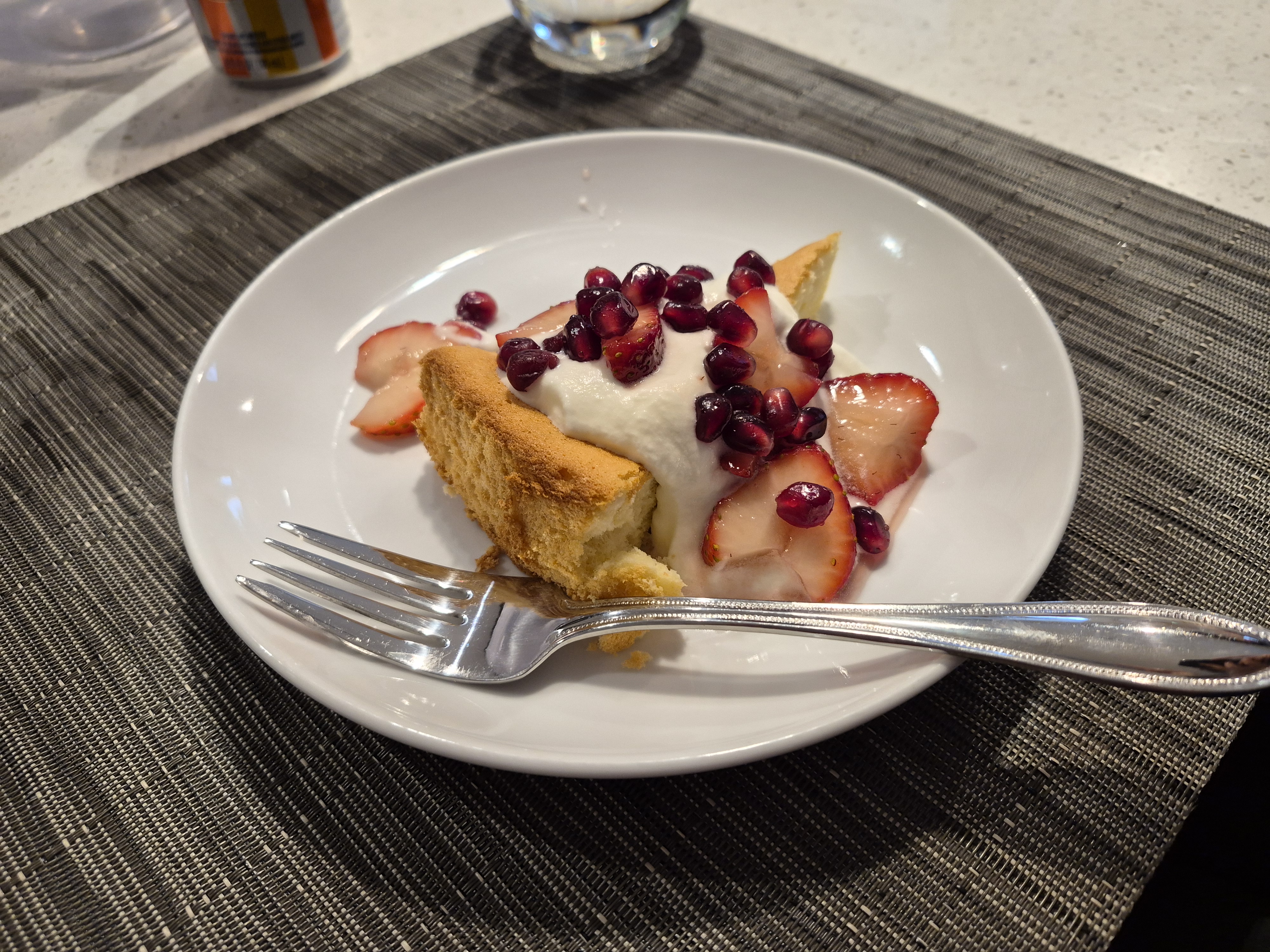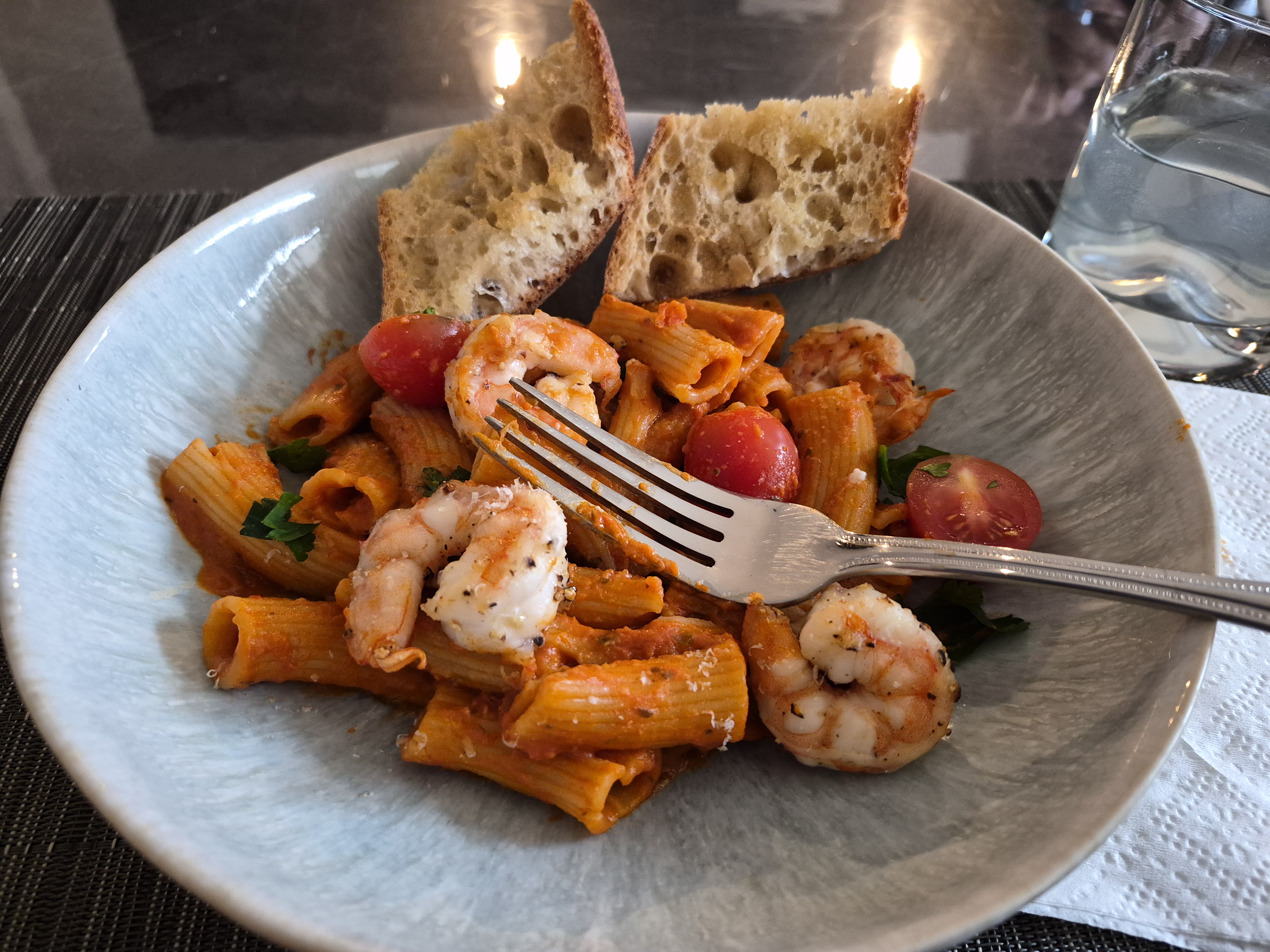 새우 스파케티와 디져트.
