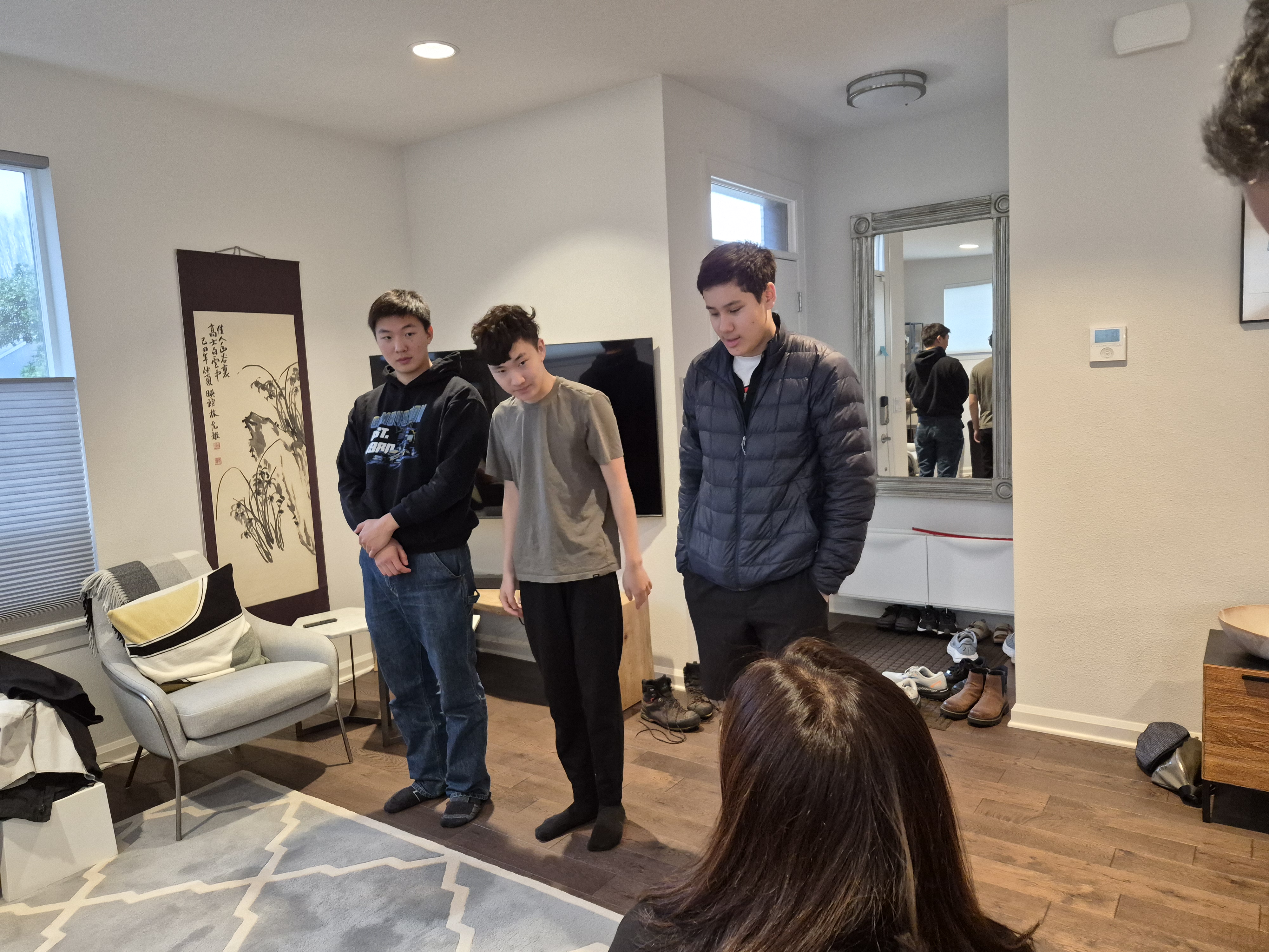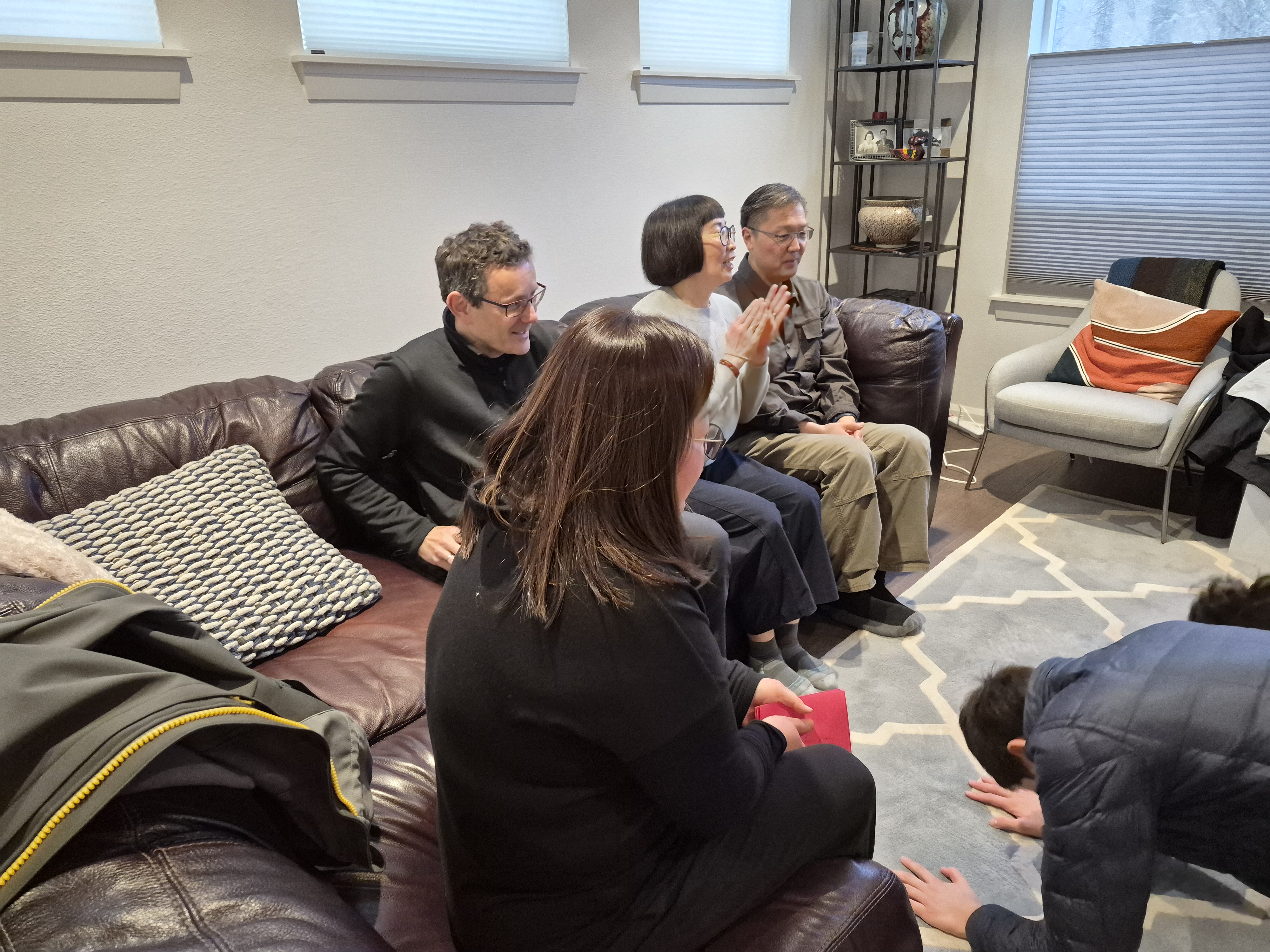 크리스마스 모임에 기도하는 식구들..